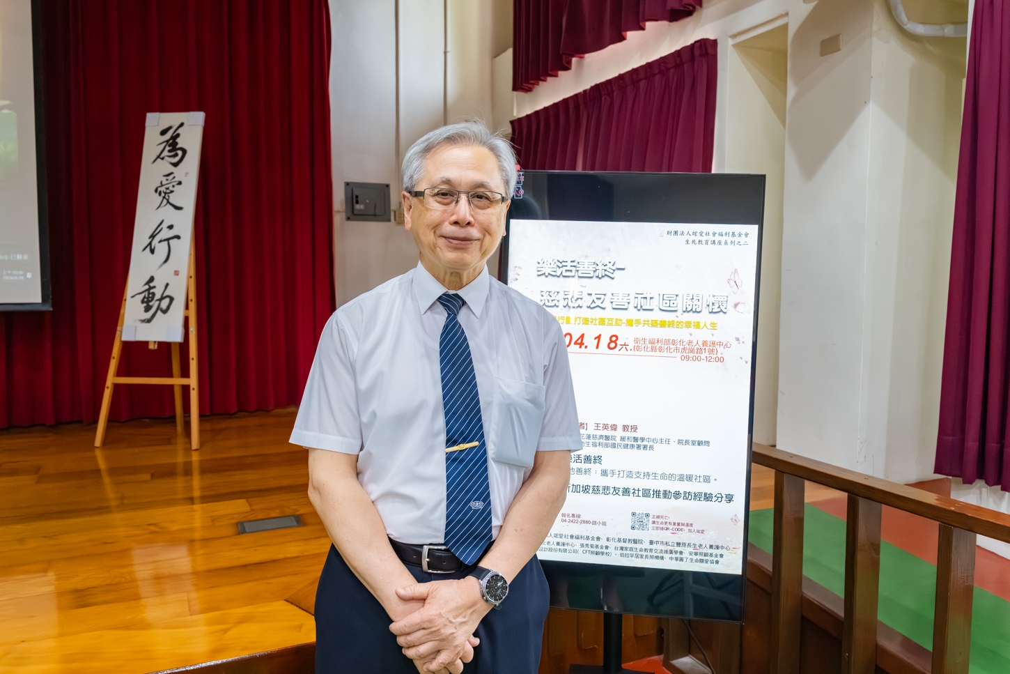 講座特別邀請前國民健康署署長王英偉教授擔任主講人,以「樂活善終」為核心主題,結合在地安老實踐與國際慈悲關懷社區經驗,深入探討如何在社區建立支持網絡,陪伴民眾走過人生最後一段旅程。其親切幽默的分享風格,使現場氣氛溫暖而深刻。