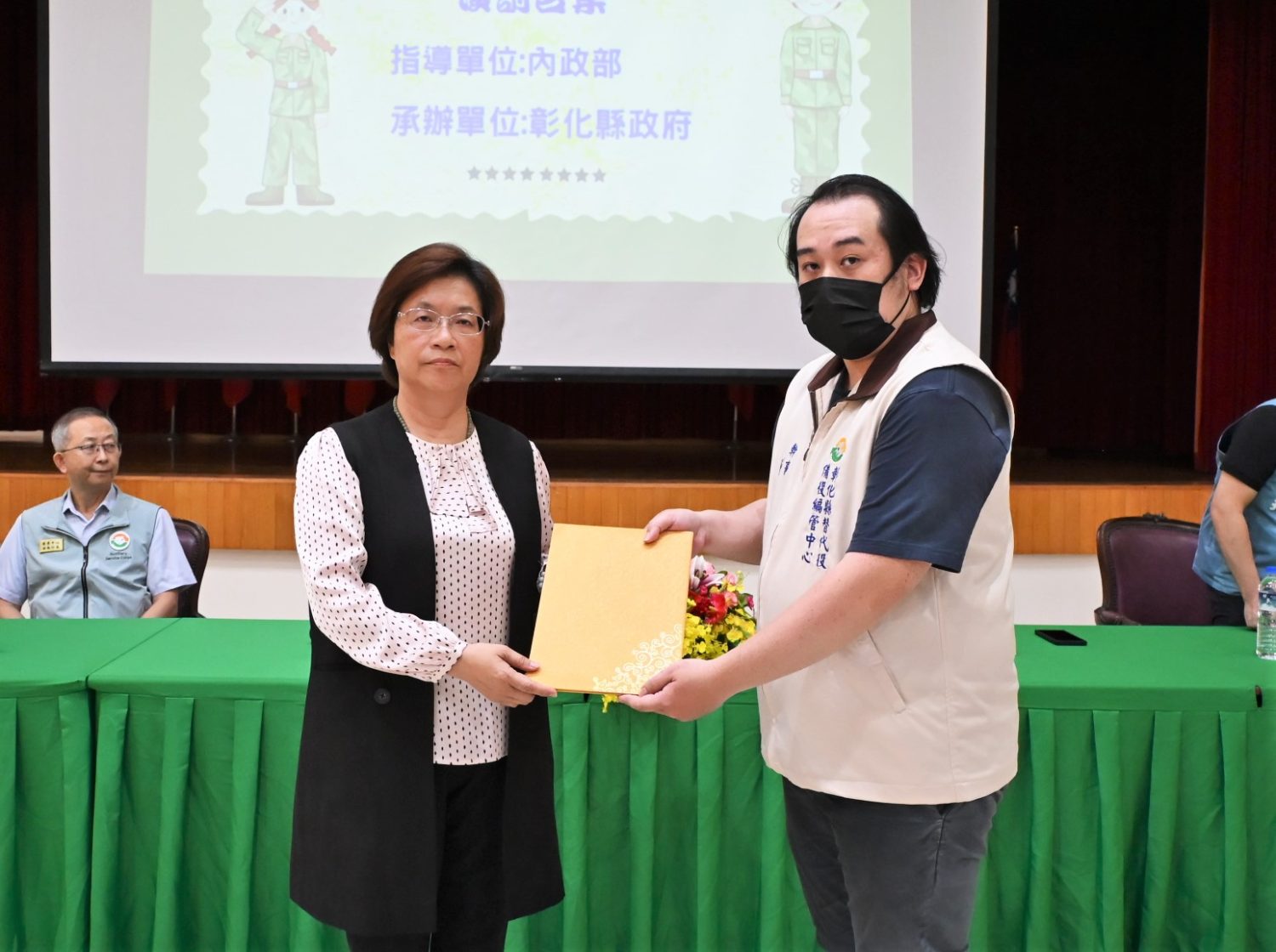 與會貴賓有內政部役政司替代役訓練及管理中心副執行長卓煥新、科長吳茝蘋、專責輔導員楊佩娟、縣府民政處長劉玉平、彰化縣替代役備役役男編管中心秘書游曜綸等。