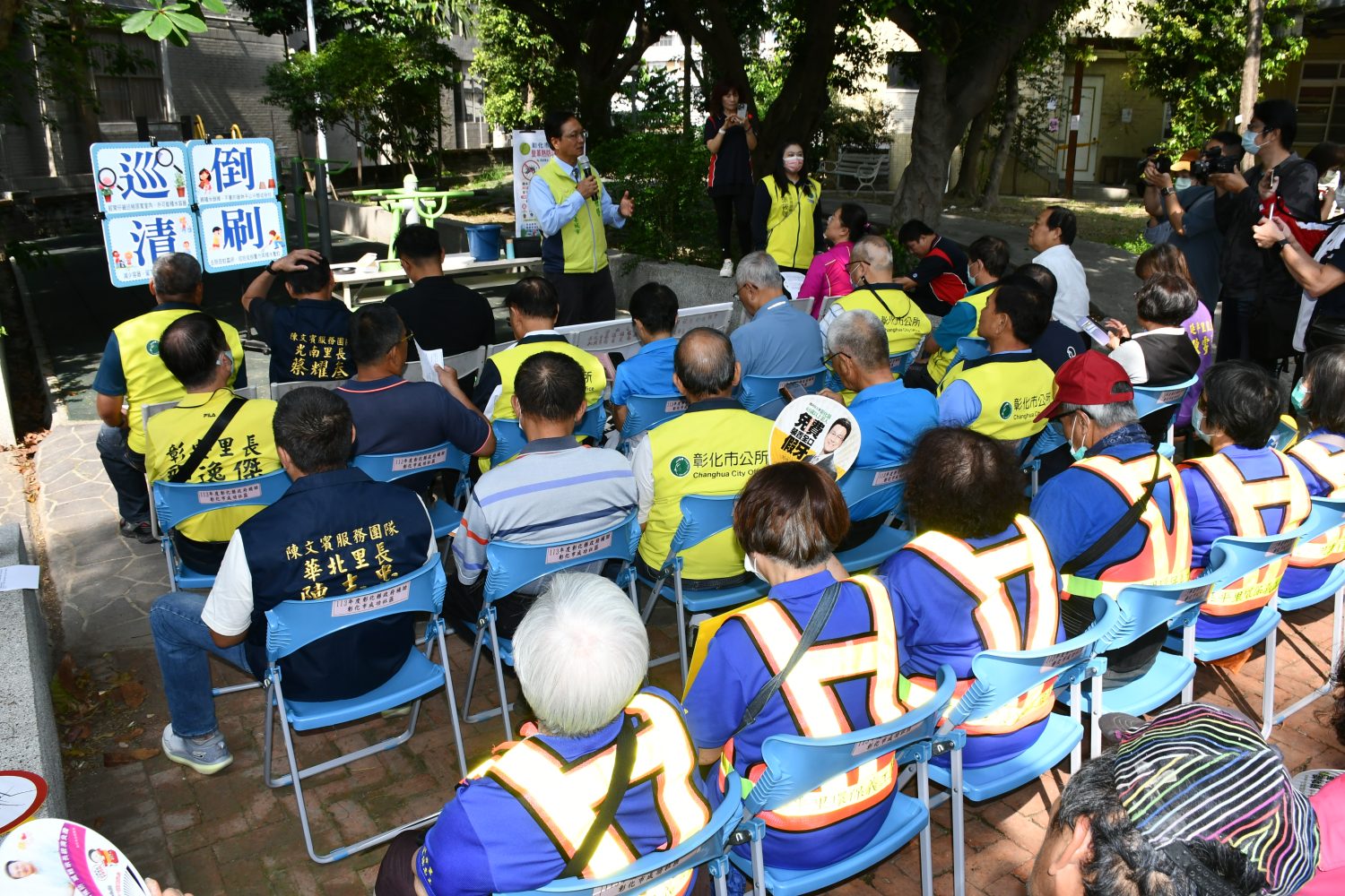 彰化市公所並加強部署-以宣導與防治雙管齊下,包括印製了8萬張登革熱防治相關措施宣傳單,分送各家戶確實宣導防治登革疫情發生的重要,同時自4月27日起執行全市73里及高中暨國中小學環境衛生消毒工作,另請里長及社區理事長、環保義工加強宣導民眾防治登革熱應貫徹自主孳生源檢查的概念,落實「巡、倒、清、刷」才能杜絕疫情發生。